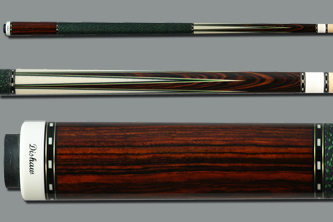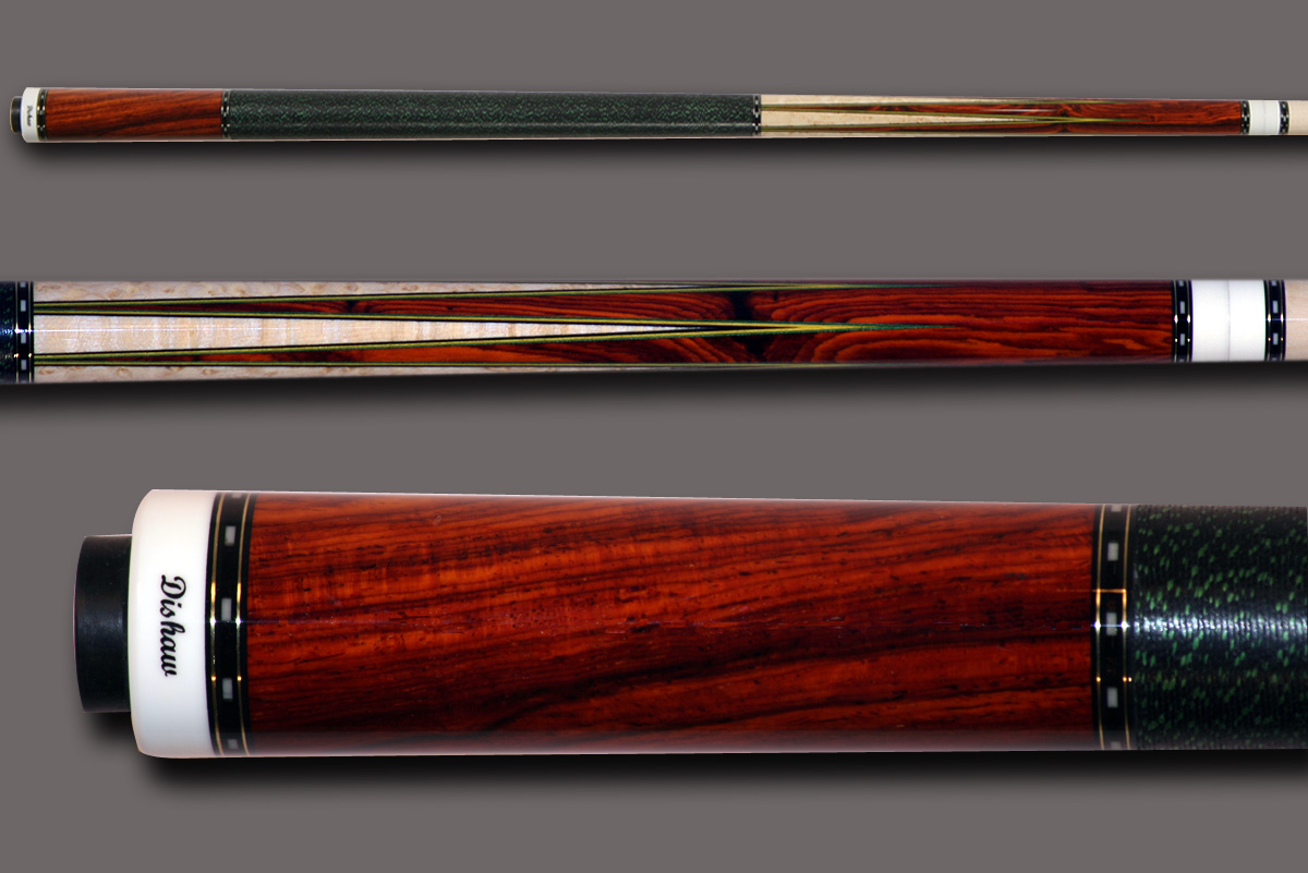 $1,299....SOLD Highly figured cocobolo forearm and butt sleeve. 6 long Ivory alternative points with wht/grn/blk veneers. 5 sets of gold colored ring sections. Black w/grn spec linen wrap Two shafts with joint protectors included. | |
