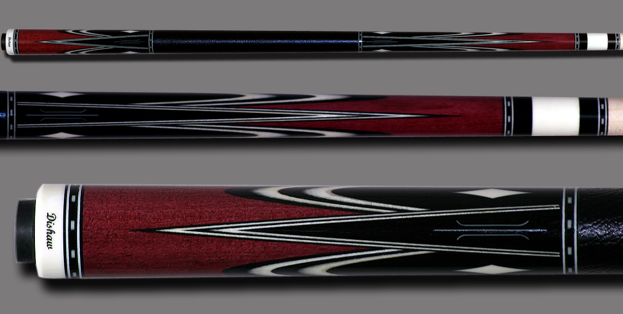 $1,690...SOLD Highly figured maple forearm and butt sleeve. 3 long 3short Ebony points with blk/red/gray veneers. Reverse point design. 5 sets of colored ring sections. Black with red spec linen wrap Two shafts with joint protectors included. |